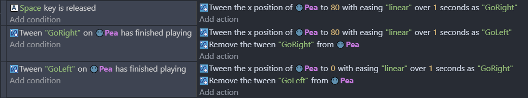 The same result can be achieved using the tween finished playing condition. This method should be used when the object may not do the second tween under some conditions.