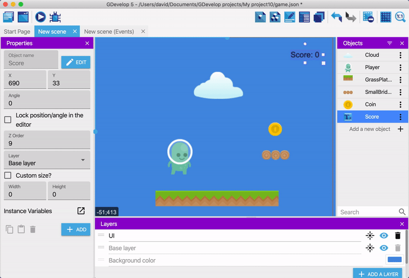 The first step is to create a coin that the player can collect. You can break this step into two parts: creating an object for the coin and then making the coin collectible by using an event to detect when the player collides with it.